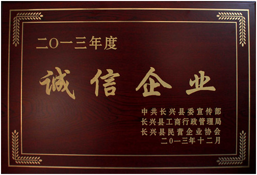 • 公司浙江長興基地被譽為“誠信企業”